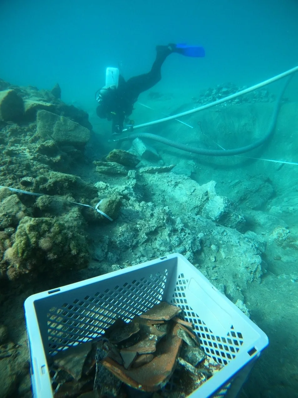 The excavation research was carried out as part of a five-year research program that began in 2022, as a follow-up to the pilot research conducted in 2021 and was a collaboration between the Ephorate of Underwater Antiquities, the Swedish Institute at Athens and the University of Stockholm, with participants from the University of Gothenburg and the company Nordic Maritime Group. The Greek side was led by Dr Panagiota Galiatsatou, Diving Archaeologist of the Ephorate of Underwater Antiquities, and the Swedish side by Professor Ann-Louise Schallin (Scientific Director, Stockholm University) and Dr Niklas Eriksson (Field Director, Stockholm University). Also participating were Ms Ekaterini Tagonidou, Diving Architect-Engineer of the Ephorate of Underwater Antiquities, Mr Themistoklis Troupakis, Diving Engineer, BA Jens Lindström, from the Nordic Maritime Group and MA Staffan Von Arbin, from the University of Gothenburg.