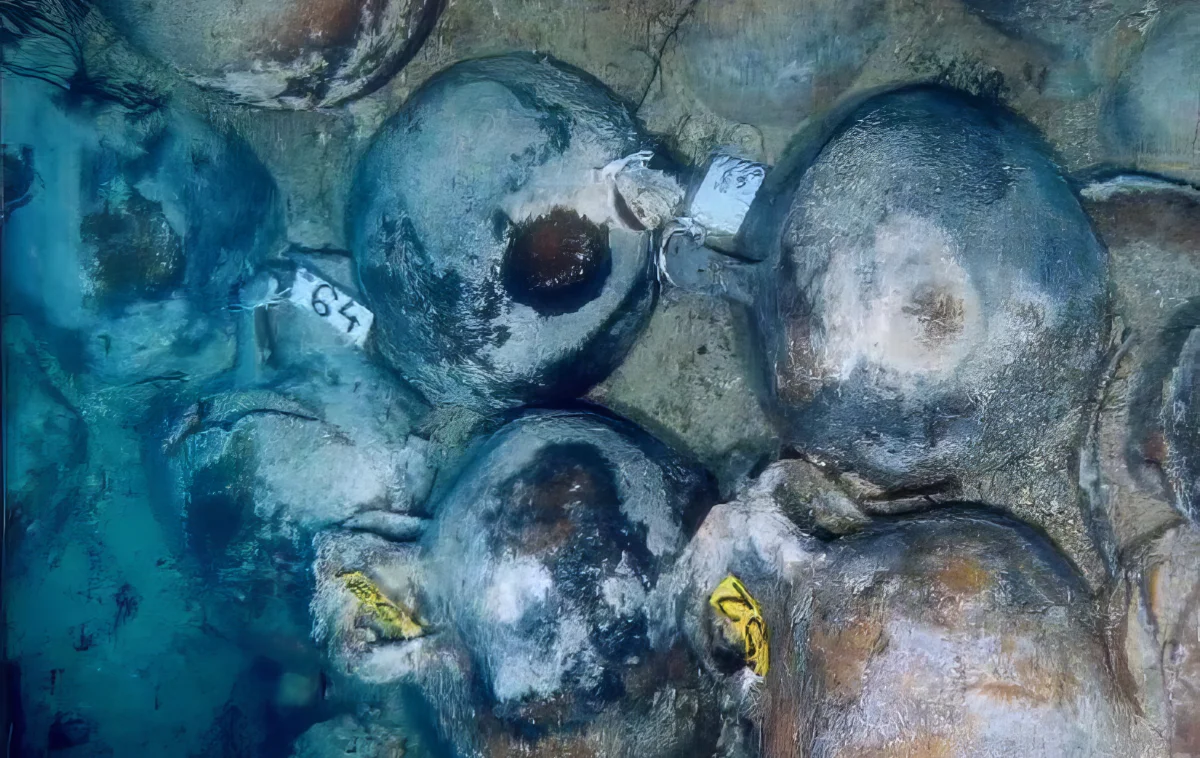 The ship was carrying mainly wine amphorae from Mendi in Chalkidiki, a city known for its excellent wine production in antiquity. During the excavations carried out in 1995-1996, 25 sharp-bottomed amphorae were uncovered, as well as various black-painted utilitarian vessels and small metal objects. One of the most impressive finds was the discovery of a wooden part of the ship measuring 70×17 centimeters, believed to come from the ship’s hull.