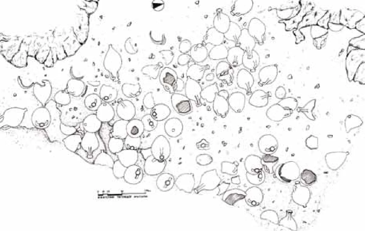 In his book “Ano Magniton Islands”, K. Mavrikis states that the shipwreck of Fagkrou was discovered at the beginning of the 20th century by sponge divers. In 1989 he dived into the shipwreck himself, while in May 1994, during a research program of the Ephorate of Underwater Antiquities in the islands of the Northern Sporades, the shipwreck was investigated by the diving archaeologist D. Haniotis and the diver N. Miliadis. At a depth of 30-37 meters, on the eastern coast of the islet, the two researchers identified a pile of amphorae from the 5th century BC, which come from the ancient city of Mende in Chalkidiki.